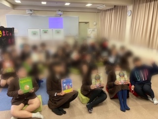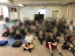 まじょ魔女さんが、あのころ(1年生のころ)の写真を6年生各クラスに見せてくれました。そして、今の記念撮影をしました。