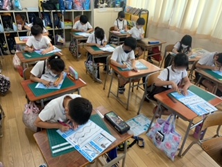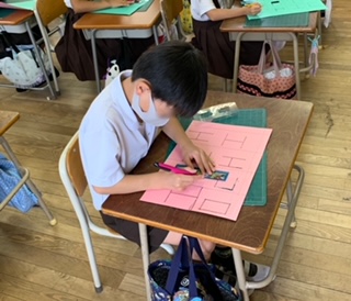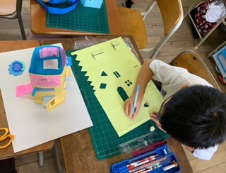 今週の図画工作の時間は、カッターを使った作品作りにチャレンジしています。