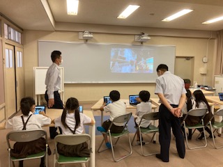 1クラスを4つに分けて、クイズや動画、VRで防災について学びました。