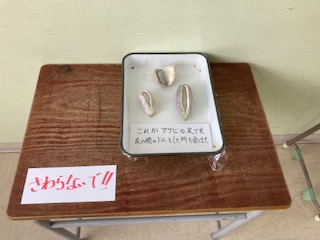 毎年、秋になると地域の方から『あけび』をいただきます。現在では貴重な『あけび』は理科室前に展示しています。