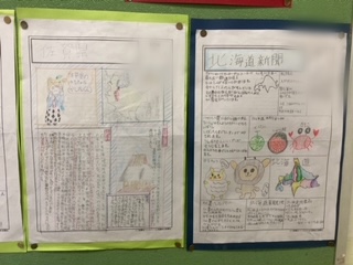 4年生が都道府県新聞をつくりました。レイアウトを考え、伝えたい記事が順番に書かれて、とても見やすく分かりやすい新聞ができました。