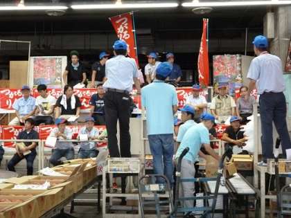 青果物のせり場では「手振符牒」という金額を表す方法を教えてもらい、