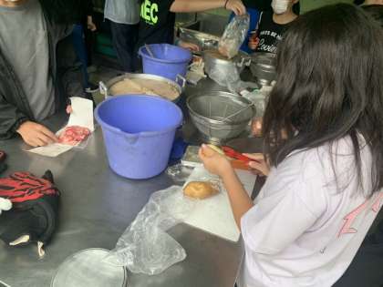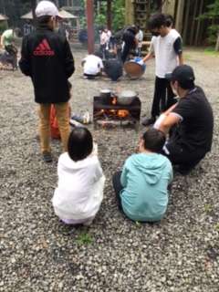 登山の後は、お昼ごはんのカレーライス作りです。協力して作ります。
