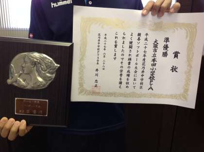 過日行われた「花乃井中学校区親善ソフトボール大会」で、