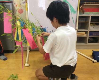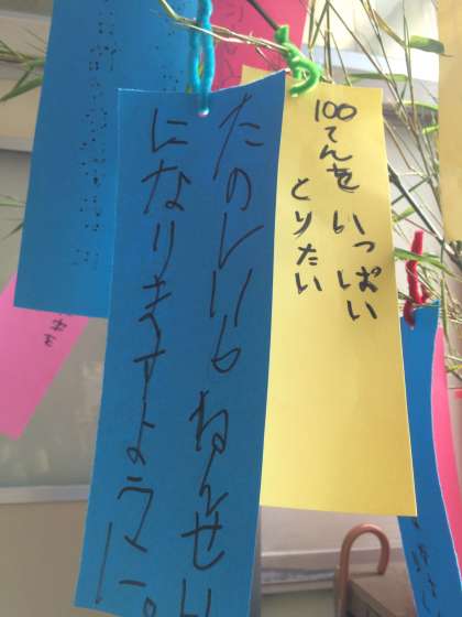 あいにくのお天気でしたが、みんなで集まって願いをこめて短冊を書きました。