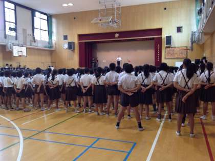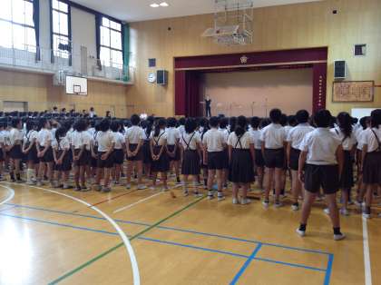 最後に全校で校歌を歌って