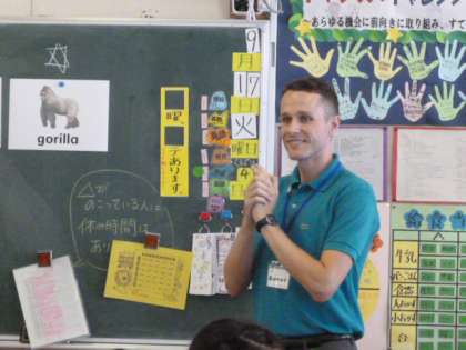 今日は、バレット先生と一緒に英語の活動を行いました。