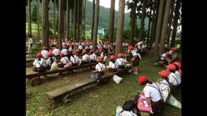 みんなでお弁当を食べていたら、雨がパラパラ。。