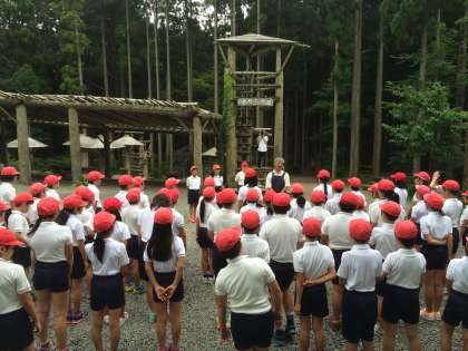 雨もやみ、外で開舎式を行うことができました。児童代表がアサヒロッジの方にしっかり挨拶できました。