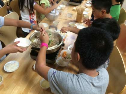 外は霧雨で、この後のキャンプファイヤーは検討中です。