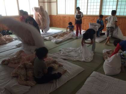 6時半起床。眠い目をこすりながら、布団をたたみます。