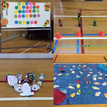 今回縦割りで3つの班に分かれ、ボーリングや輪投げ、魚つりの準備をしました。その中で班の友だちと協力し、一生懸命取り組む姿が見られました。