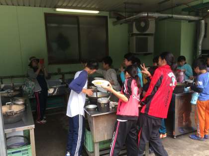 すぐに雨も上がり、子どもたちは、思い思いの場所で食べ始めています。