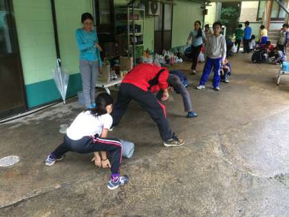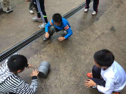 班によって、転がす方法は様々です。疲れて転がすのをやめると、うまく固まりません。掛け声をかけたり、しりとりをしたり、みんな工夫して楽しんでいます。