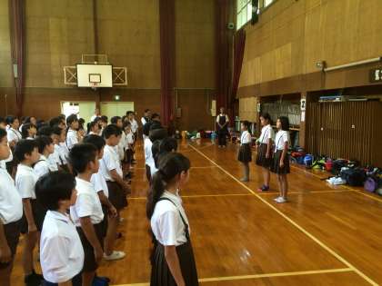 3日間、お世話になったアサヒロッジの方々へ児童代表がお礼の言葉を伝えました。