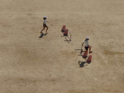 運動場では、ハードル走の学習を行いました。