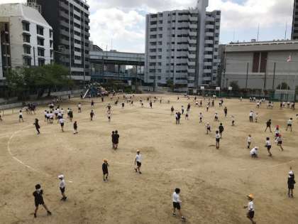 少しひんやりとしますが、子どもたちは元気に運動場で遊んでいます。