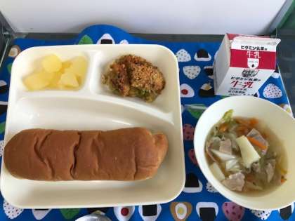 カレードリア、豚肉とキャベツのスープ、りんごです。