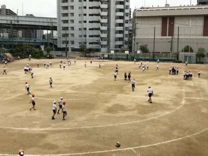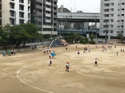 運動会の練習をしていますが、子どもたちは元気に運動場で遊んでいます。