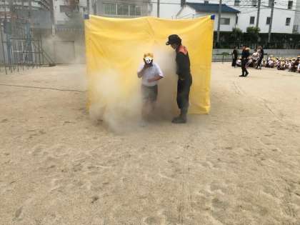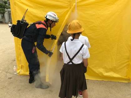 消防署による体験活動の煙テントです。
