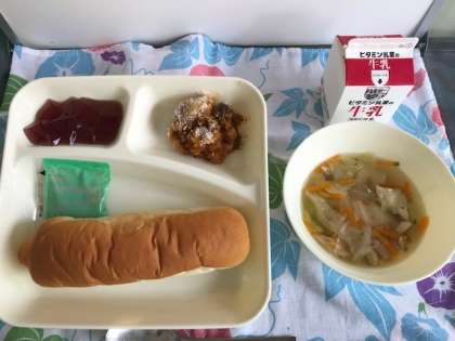 なすのミートグラタン、スープ、ダイスゼリーです。