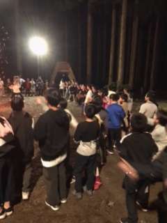 キャンプファイヤーはとても盛り上がりました。子どもたちはお風呂に入り、就寝の準備をします。