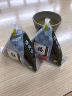 天気が良かったら、おにぎりを持って登山をする予定でしたが、今日は雨が降っているので、食堂でいただきます。