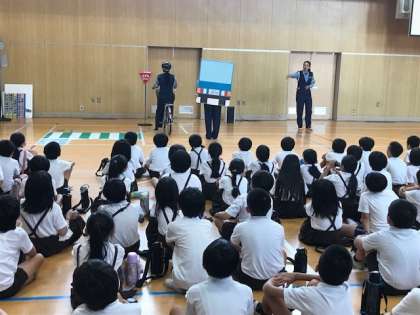 上から低学年、中学年、高学年の交通安全教室のようすです。