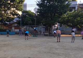 本田公園のラジオ体操は、地域の方の参加も多いです。