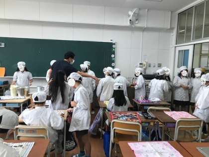 4年生の給食の準備のようすです。