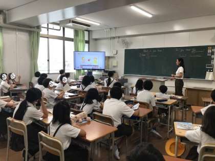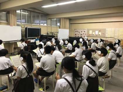 4年生の外国語と6年生の家庭科と5年生の音楽の学習のようすです。