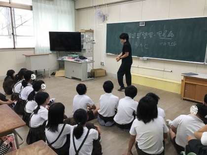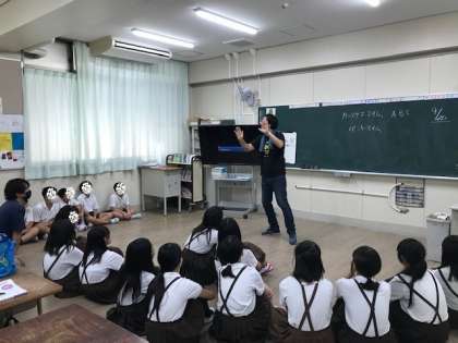 アメリカ仕込みの本格派マイムのカンジヤマ・マイムさんからパントマイムのお話を聞きました。その後、パントマイムを鑑賞したり体験したりしました。