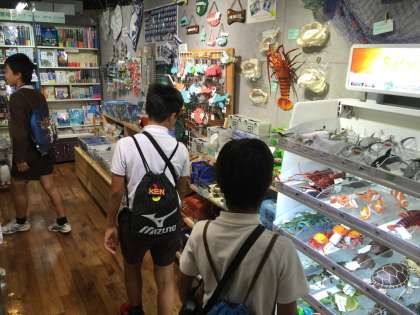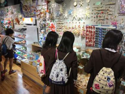 鳥羽水族館にはお土産屋さんがたくさんあります。かわいいものがいっぱいで、悩んでいます。