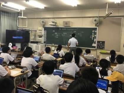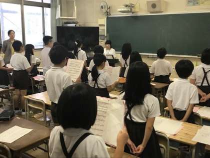 3年生の音楽と5年生の社会科と1年生の国語の学習のようすです。