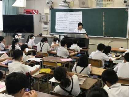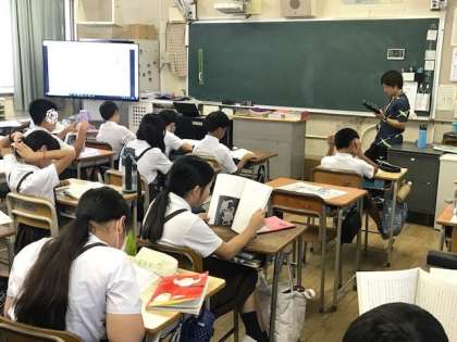 4年生の外国語と3年生の音楽と5年生の国語の学習です。