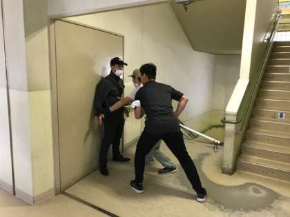 西警察署の方に来ていただいて、不審者対応の訓練をしました。