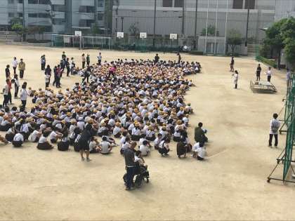 運動場に避難をした後に、校長先生と西警察署の方のお話を聞きました。