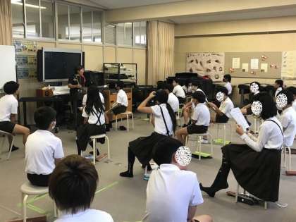 4年生と3年生の国語と5年生の音楽の学習のようすです。