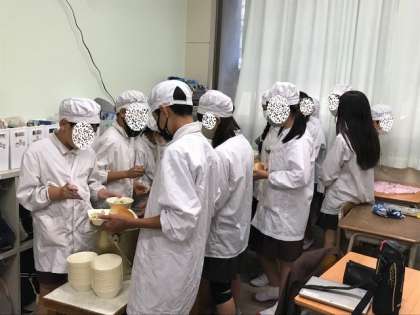 給食の準備は、6年生です。