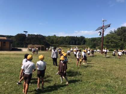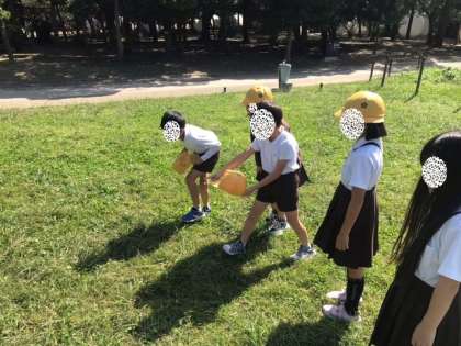 みんなバッタをつかまえたりどんぐりを探したり、自然を楽しんでいます。