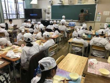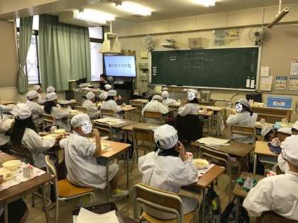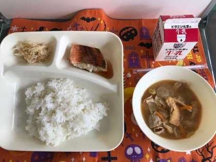 あかうおのしょうゆだれかけ、豚汁、もやしのゆずの香あえです。