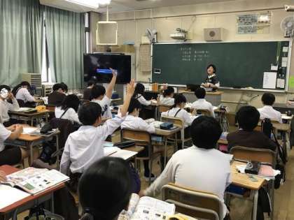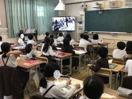 3年生の国語と5年生の外国語と社会科の学習のようすです。