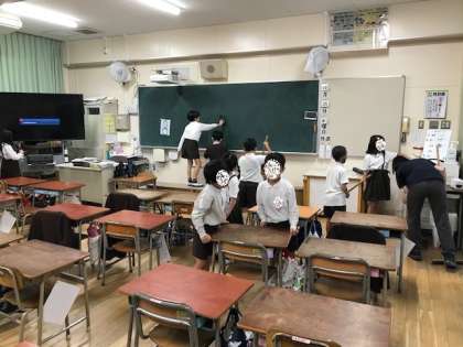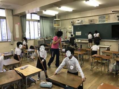 みんなで教室をきれいにします。