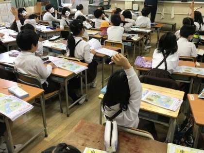 1年生の国語と3年生の理科と6年生の社会科の学習です。
