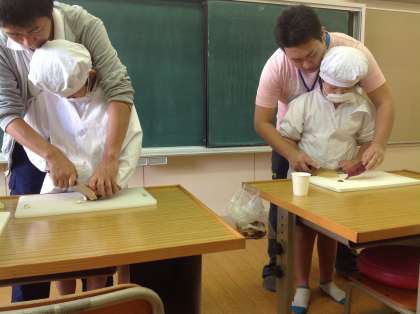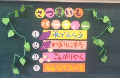 今週水曜日に、ひまわり学級の学習園で育てたサツマイモを使って、おいもパーティーをしました。