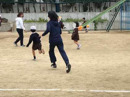 今季一番の冷え込みですが、子どもたちは元気に運動場で遊んでいます。