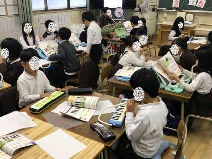 2年生の国語と1年生の音楽と6年生の外国語の学習です。