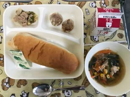 焼きシューマイ、中華みそスープ、ツナと野菜のオイスターソースいためです。