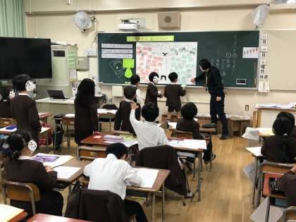 2年生の学級活動と1年生の国語と6年生の社会科の学習です。