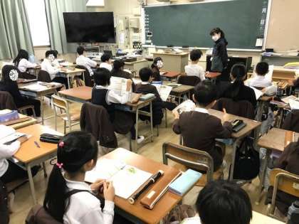 3年生の音楽と2年生の図工と6年生の社会科の学習のようすです。